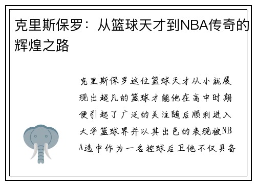 哈里森・巴恩斯,这位在篮球界备受瞩目的运动员,以其卓越的球技和坚定的职业态度赢得了众多球迷的喜爱。本文将对他的篮球之路进行深入回顾,探讨他从青少年时期到NBA的成长历程、职业生涯中的关键时刻、在球队中的角色及其对社会的影响等四个方面。通过这些内容,我们可以更全面地理解哈里森・巴恩斯不仅是一名优秀的篮球运动员,更是一个具备领导力和社会责任感的人物。他的故事激励着无数年轻球员追求梦想,也让我们看到了努...