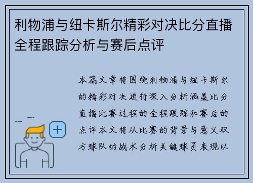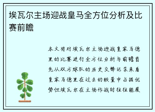 在即将到来的比赛中,奈梅亨将迎战强敌埃因霍温,这场激烈的对决无疑吸引了众多球迷的关注。两队在联赛中的表现各有千秋,奈梅亨作为主场之队希望借助主场之利争取佳绩,而埃因霍温则拥有强大的实力与丰富的比赛经验,期待能够在客场取得胜利。这不仅是一场单纯的比赛,更是双方教练战术智慧的较量、球员们个人能力的展示,以及球迷激情支持的完美结合。本篇文章将从球队历史背景、近期状态分析、关键球员表现以及战术对决四个方面...